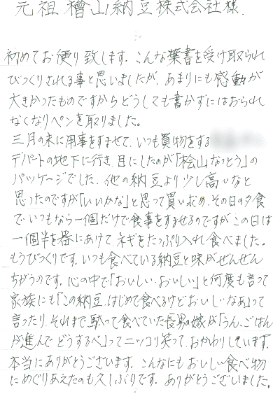 お客様から、お便りをいただいております。